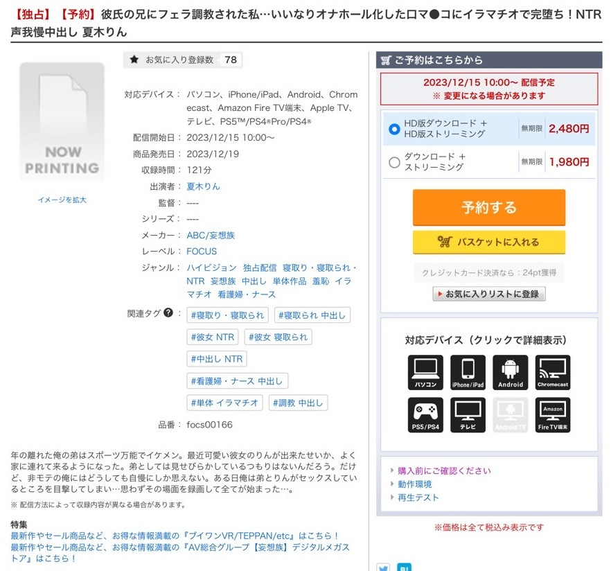 而且一下子还三支作品,12月中,她在妄想族集团将会有「彼氏の兄にフェラ调教された私…いいなりオナホール化した口マ●コにイラマチオで完堕ち!NTR声我慢中出し」、「完全プライベート映像最强かわいい要注意警报!夏木りんちゃんと初めての二人きりお泊まり」两支还没有公布封面的作品,12月27日,她则是移防另一家片䀍First Star发表新作「ミスコン准优胜したGカップ美人女子大生りん(21)」;从这3支作品我们马上就可以明白三件事,且让我一一为大家介绍: